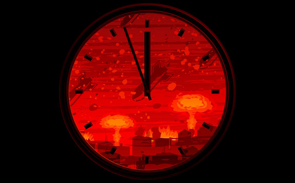 Their Clock was created to convey threats to humanity and the planet. Midnight represents Doomsday, or when these threats will peak and cause a global catastrophe.The decision to move the minute hand of the Doomsday Clock is made by the Bulletin’s Board of Directors in consultation with its Board of Sponsors, which includes 18 Nobel Laureates.