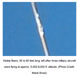 Using critical thinking skills, Snow and Gunnels, patriots and local residents, decided to collect samples of the fibrous material which was deployed from the three military planes earlier that day, saving the samples for testing. In fact, the fibers looked so ominous that Snow even opted not to touch them with her “bare hands” and collected them on “white pieces of paper”.