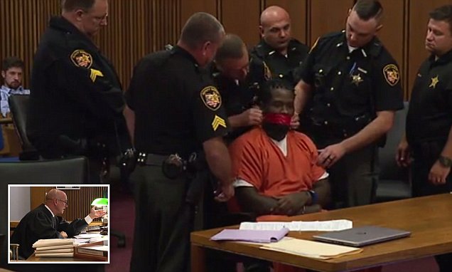 A group of six deputies surrounded Williams before they covered his mouth with red duct tape. “It’s against my rights, man, it’s not fair,” Williams said as a deputy prepared the tape, WHIOTV reports. “This judge is just trying to send me to prison. I’m getting no justice, this is not a fair trial.”