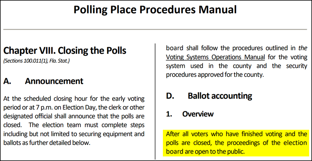 Brakey knew he might be blocked by poll workers from entering the Broward precinct during closing of the polls — even though he would have been within his rights to do so.