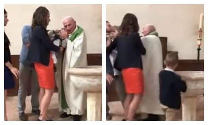 A video has emerged online showing a priest slapping a crying toddler during a baptism.