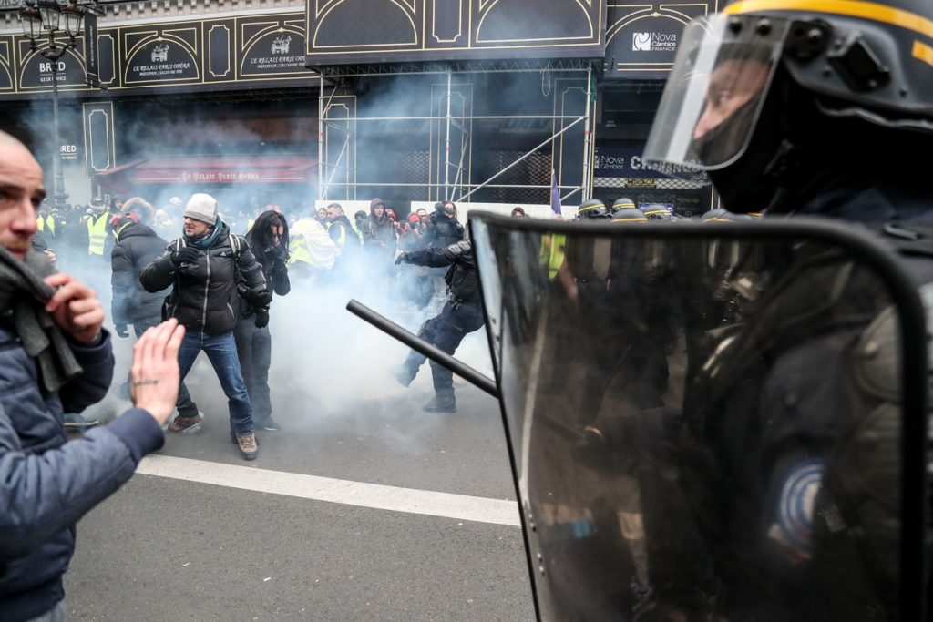 Protesters wearing their now-famous yellow vests (‘Gilets jaunes’) held a minute’s silence on the streets of Paris in the morning for those injured and killed in clashes with police