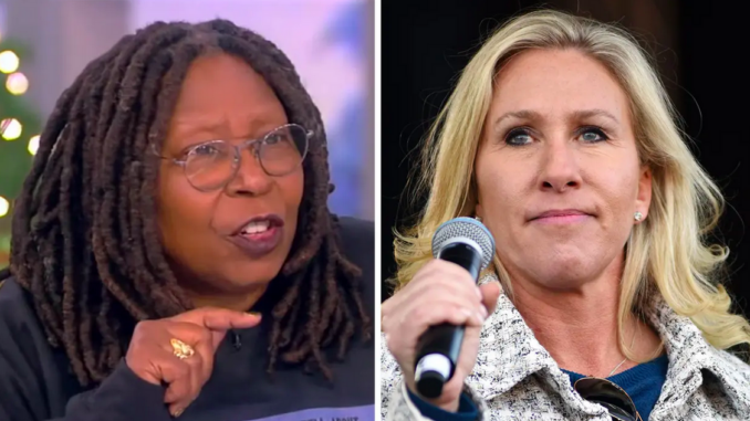 Whoopi Goldberg has declared that Rep. Marjorie Taylor Greene (R-GA) belongs “behind bars” after the Georgia congresswoman mocked the anti-Trump Jan. 6 Committee witch hunt during a recent speech.