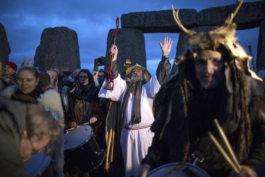 Thousands of people including Pagans, Druids and Witches gathered at Stonehenge to witness the sunrise on the shortest day of the year in the northern hemisphere.