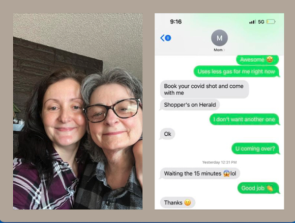 “My mom text me right after she got the shot to let me know she was waiting the 15 min and I text her back,” Foster said on Facebook.