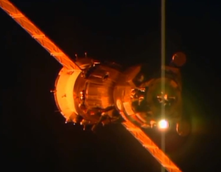 Samantha Cristogoretti states: ”For now, I will tell you another time, which was so lucky and unexpected.” (Then later states). “As I turned to look out at the beginning I looked back and saw one of the solar panels of our Soyuz. Then my eyes caught something in your peripheral vision. And as I turned around slowly, when I realized what I was seeing, I was overwhelmed by sheer amazement and joy: the Space Station was there but it was not just any views. The enormous solar panels were inundated with a blaze of orange light, vivid, warm, almost alien. I could not help but exclaim something out loud, you can probably hear in the recordings of our docking [retail 4:34 in the video-Translator’s note], because at that point we were at “open mic” with Mission Control. Anton reminded me of it, and so I tried to contain my amazement and return to the monitoring of docking. When I peeked again later, the orange glow was gone.”