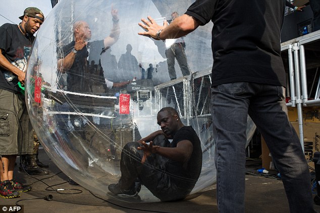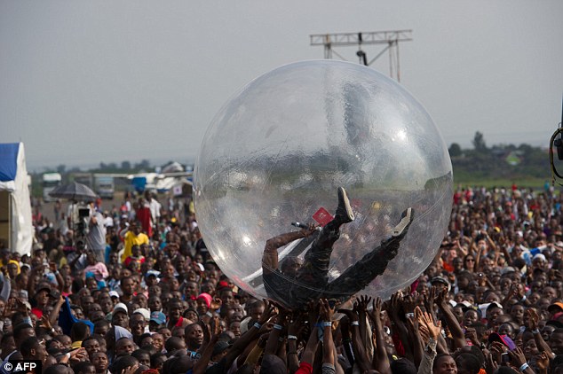 The ‘Locked Up’ singer climbed inside the airtight blow-up during a performance in Goma, in the Democratic Republic of Congo, on Sunday and rolled over the crowd, pushed along by the outstretched hands of 60,000 screaming concert-goers.